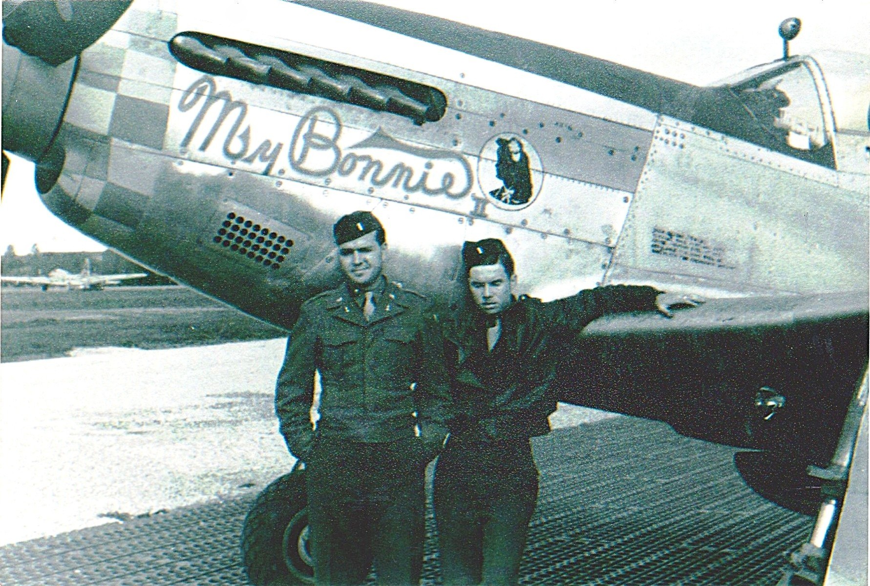 Lt John McDonald and roommate Lt Joe Shea with Joe's P-51D, My Bonnie.