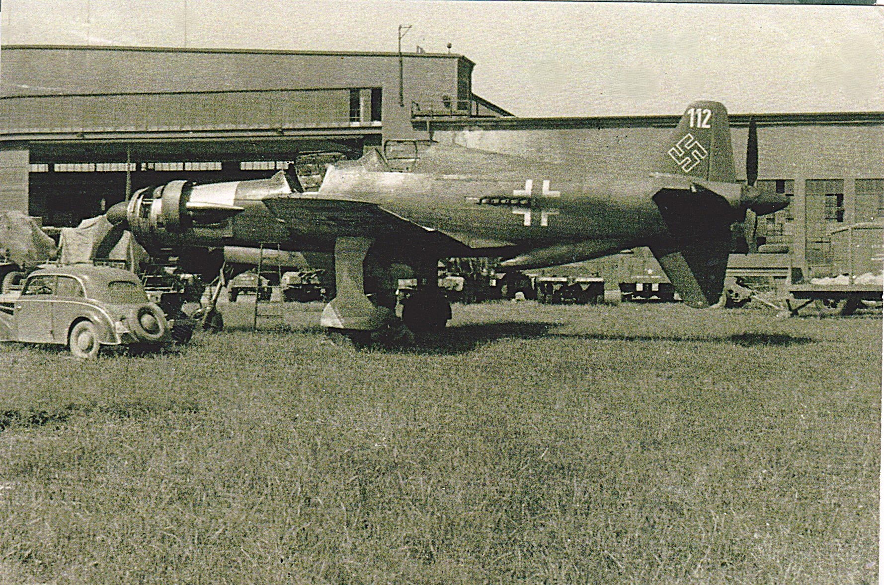 Two seat DO-335 on July 1, 1945. There were two of these aircraft at the field near Munich. One was taken to England and later crashed. The other was taken to the United States for uation. The two-seater trainer version was called Ameisenbär ("anteater").