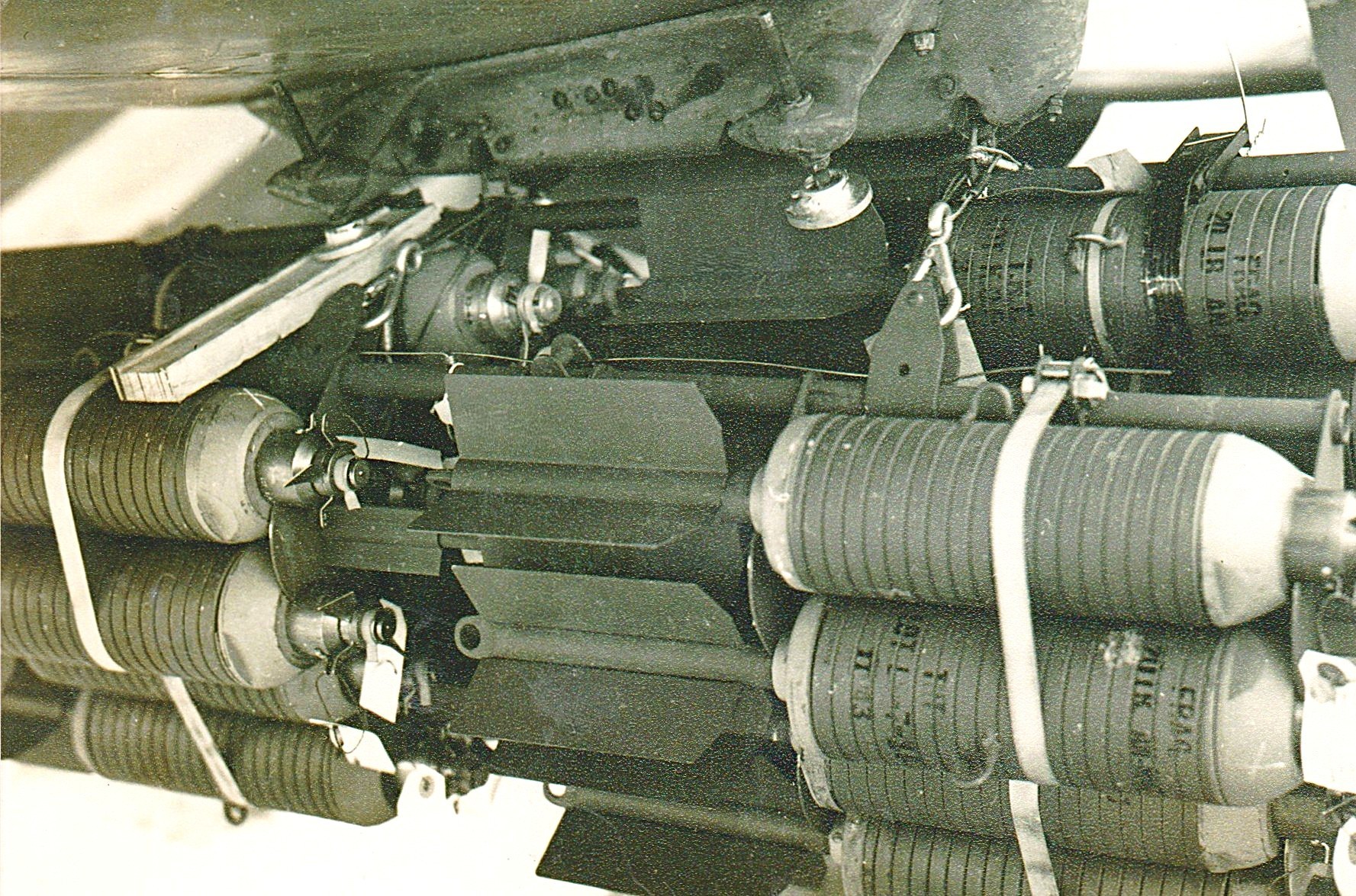 • Ribbed cylindrical bodies → characteristic of U.S. frag bombs designed to shatter into lethal fragments