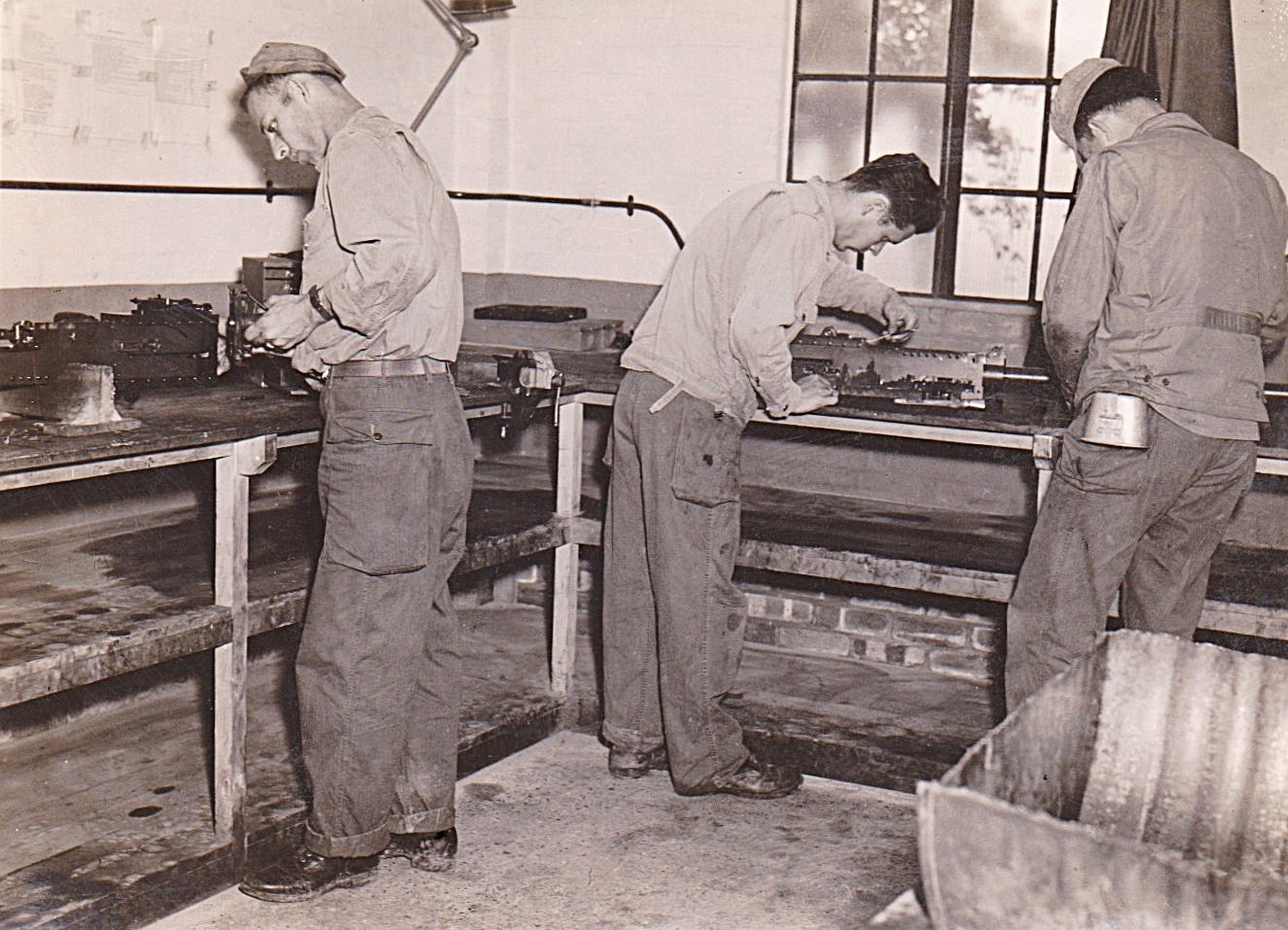 Weapon crews cleaning 50 Cal machine guns for the 357th FG.