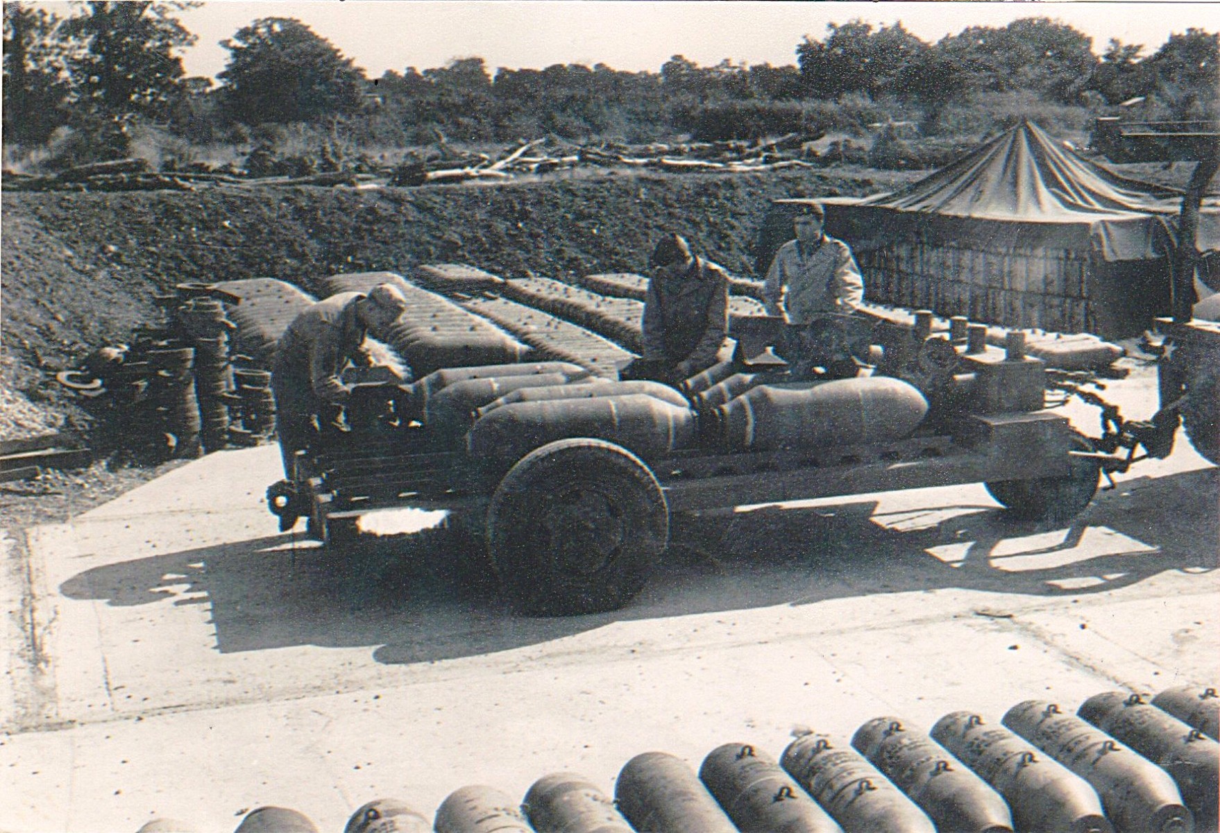 Lt McDonald in the 357th bomb storage area.