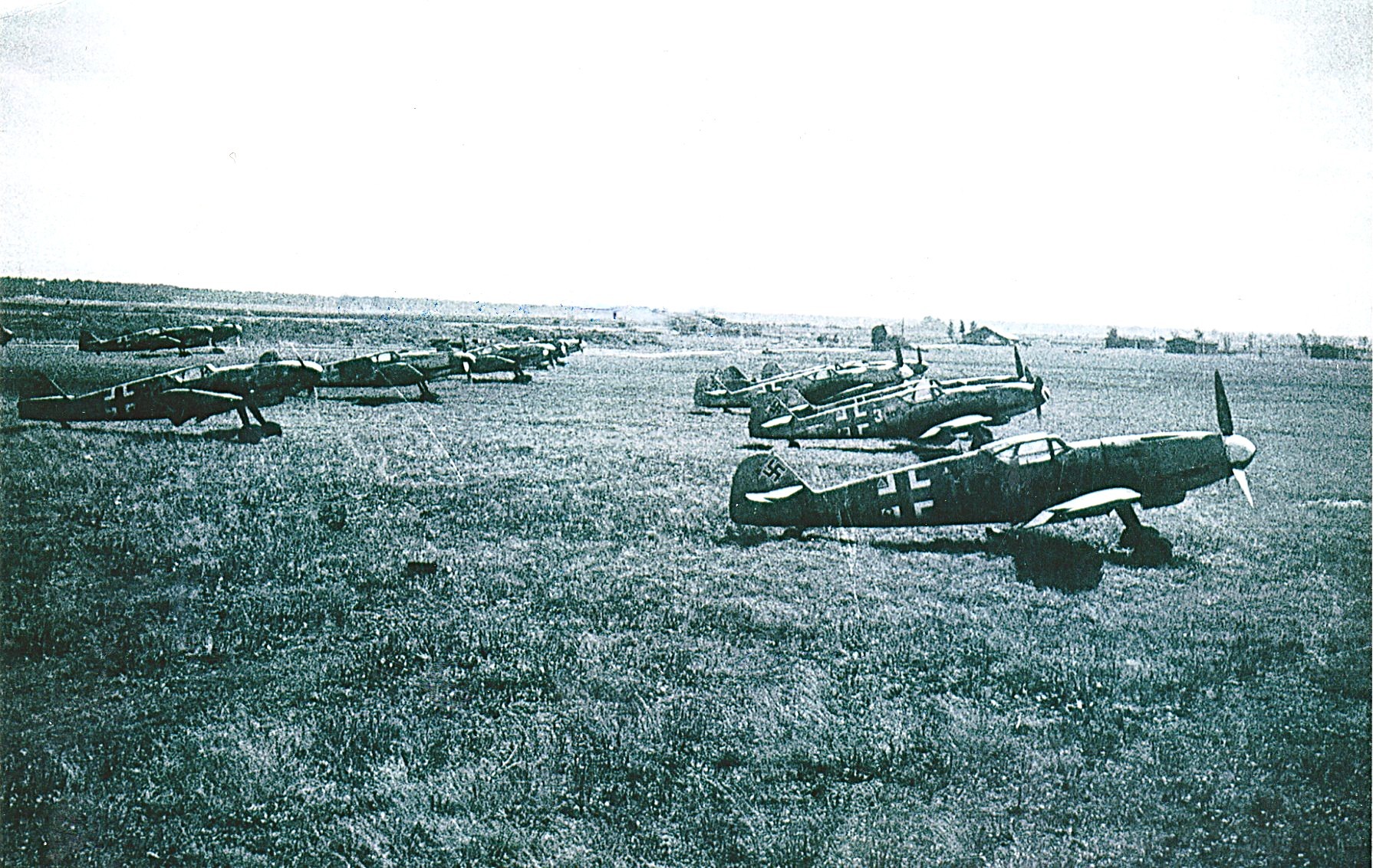 Many ME-109s at the 357th FG airfield near Munich.