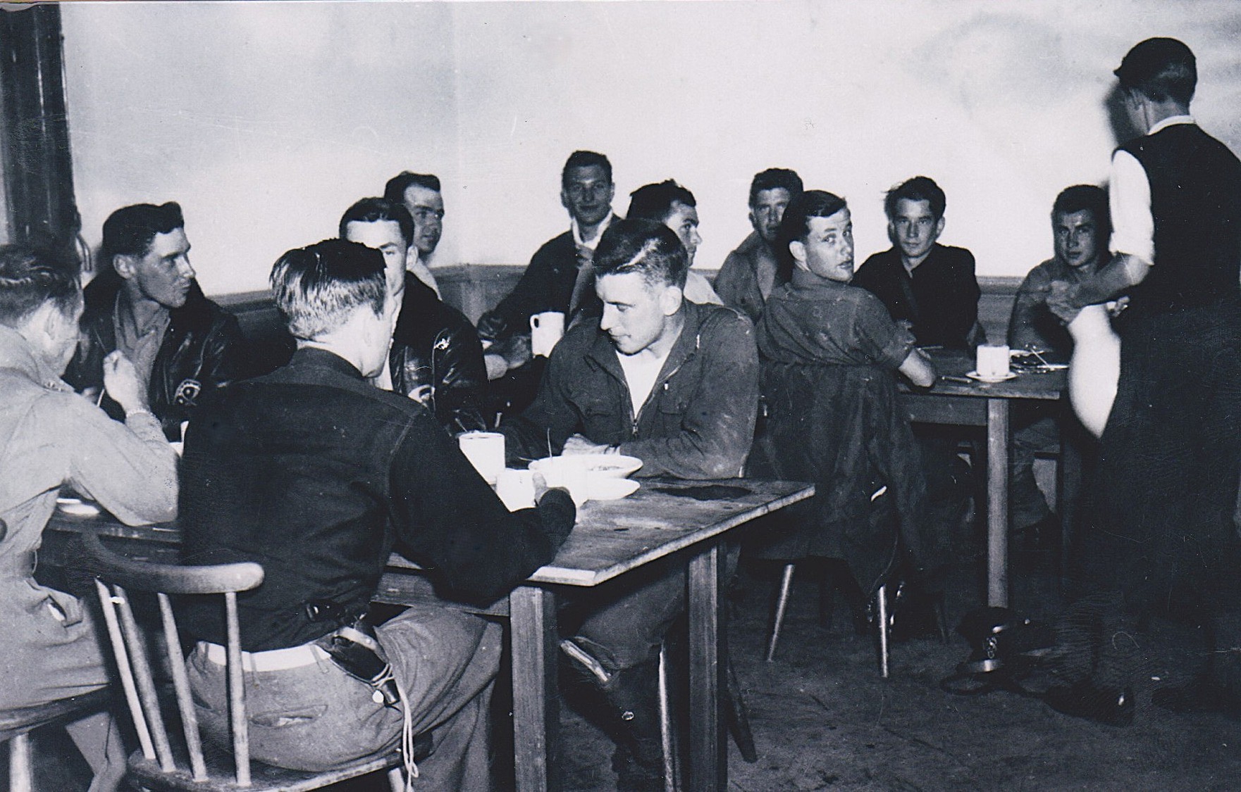 Chow Hall. Top Gun Ace Kit Carson on the left looking over his shoulder.