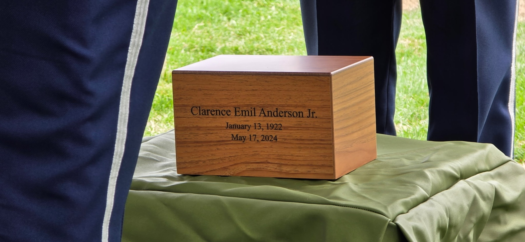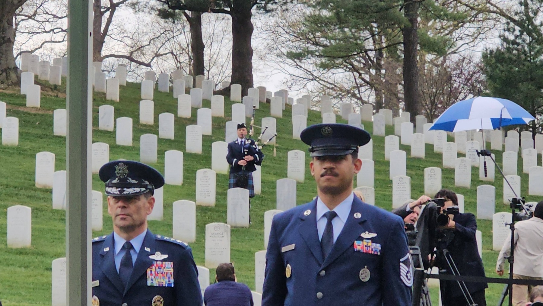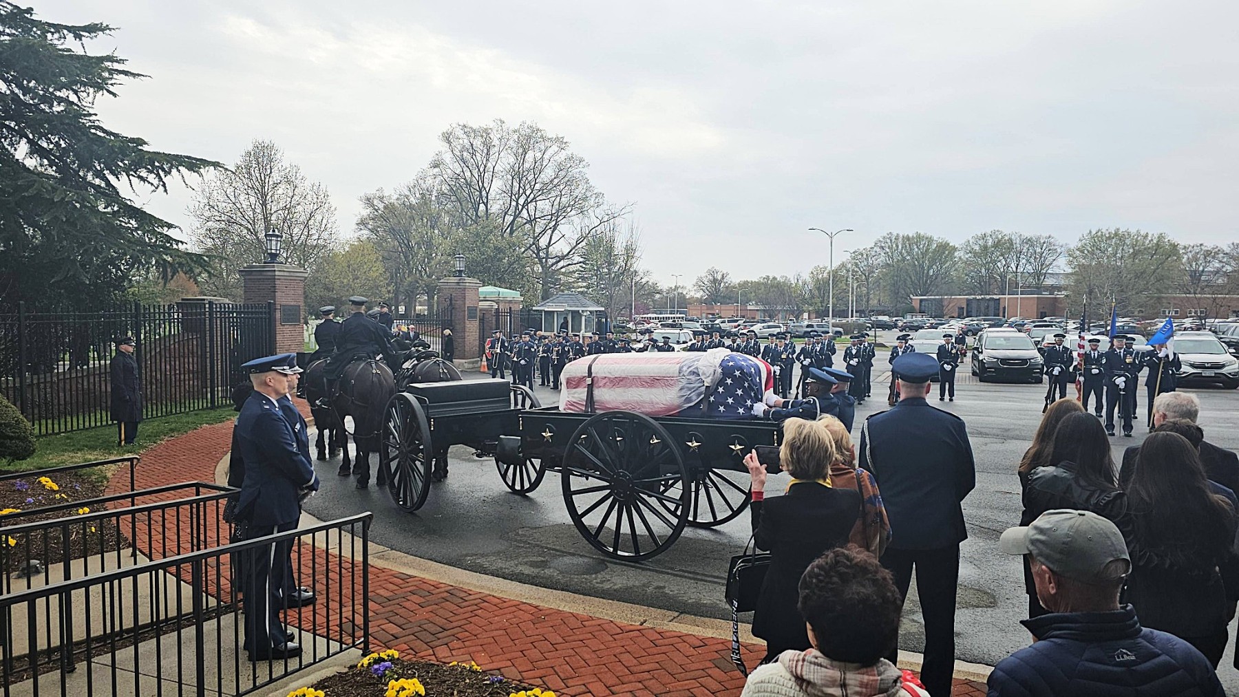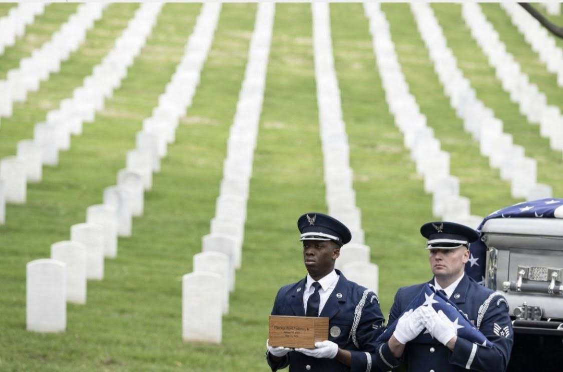 The ceremony reflected the full weight of military tradition. A horse-drawn caisson carried Anderson’s urn through the cemetery grounds. An Air Force firing party delivered a three-volley salute, followed by the haunting notes of “Taps.” A lone bagpiper closed with “Amazing Grace,” the music drifting across the rolling hills.