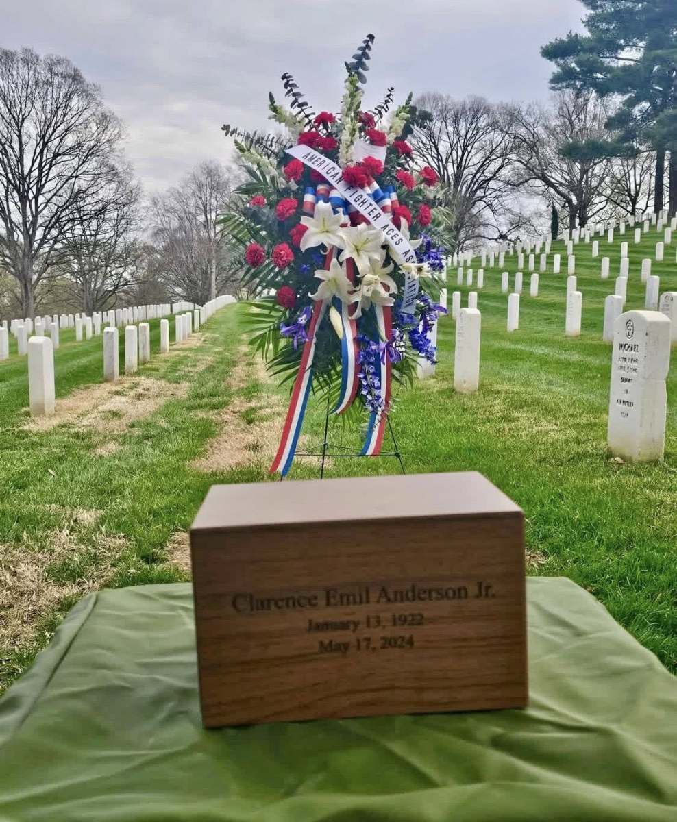 More than 100 attendees gathered to pay their respects—family members, senior military leaders, fellow aviators, and citizens who understood the significance of the moment. Anderson was interred in Section 38 beside his wife of nearly 70 years, Eleanor “Ellie” Anderson, who passed away in 2015—the same year he received the Congressional Gold Medal alongside fellow American fighter aces.